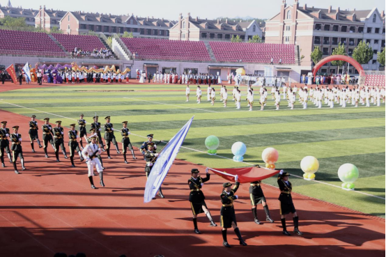 在激昂的运动员进行曲中,国旗护卫队、教工代表队及各分院代表队依次入场。各方队步伐铿锵、口号嘹亮,他们既有整齐划一的威武气势,又各具特色,带来了精彩的展演,为全场奉献了一场震撼的视觉盛宴。