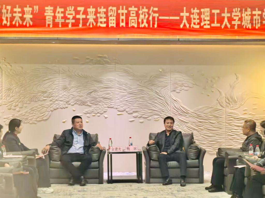 本网讯 10月15日,“智汇甘井 更好未来”青年学子来连留甘高校行活动——大连理工大学城市学院站政策宣讲会在我院西区图书馆报告厅举行。活动由座谈会和宣讲会两部分组成。院长杨斌出席座谈会,并与甘井子区人社局党组成员、副局长金建光等相关部门负责人就推动青年人才留甘就业创业、深化政校企合作等议题进行深入交流。