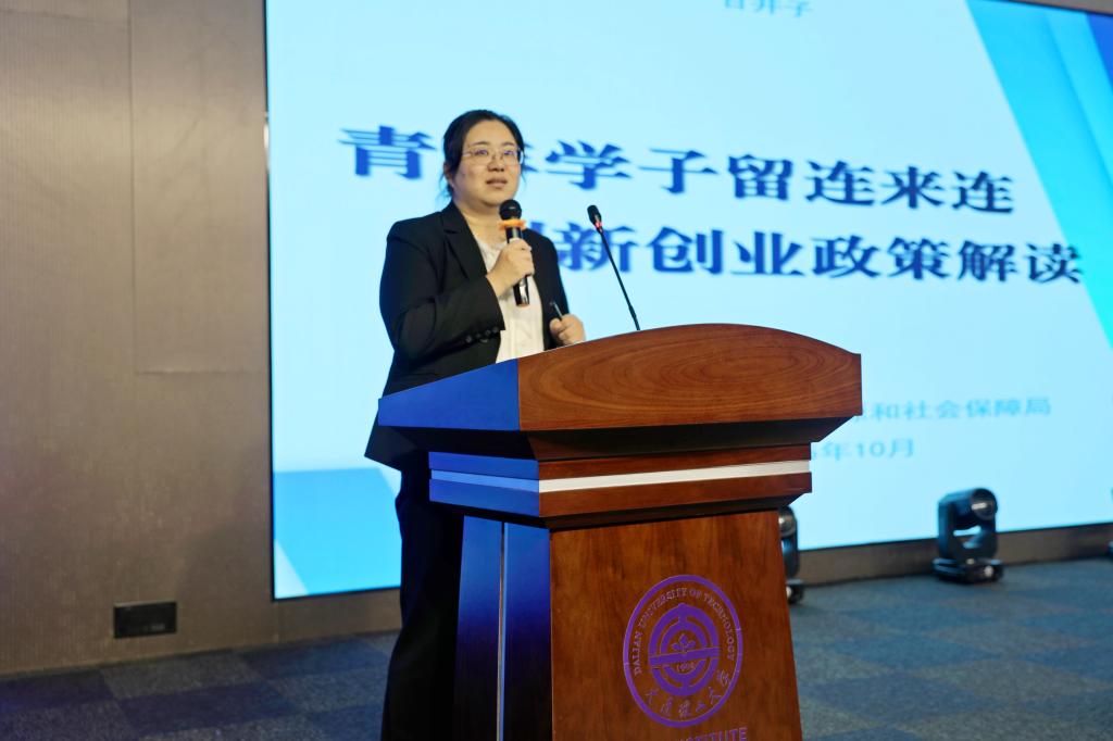 我院校友、区人社局就业促进和人才开发科科长陈颖对大连市创业政策及“兴连英才”计划作了详细解读,为学生留连留甘提供了清晰的政策路径。