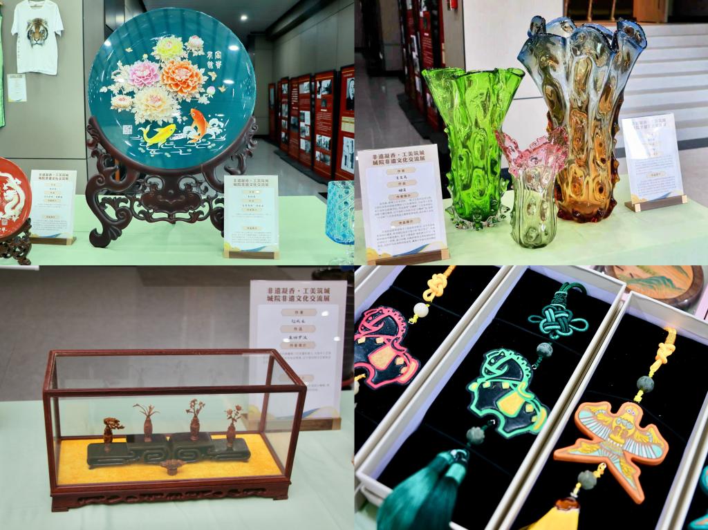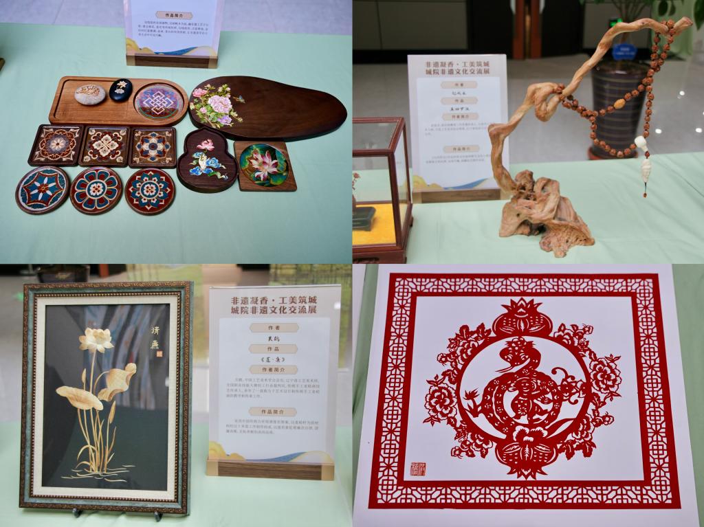 在活动现场,近百件涵盖传统技艺、传统美术等多个门类的非遗精品集中亮相,既有非遗传承人、工艺美术大师深耕多年的传世之作,也有我院师生结合现代设计理念创作的非遗文创作品。精美的木雕作品纹理清晰、栩栩如生;细腻的刺绣针脚工整、纹样雅致;古朴的陶瓷器具釉色莹润、造型独特,引得现场师生驻足观赏、拍照留念。