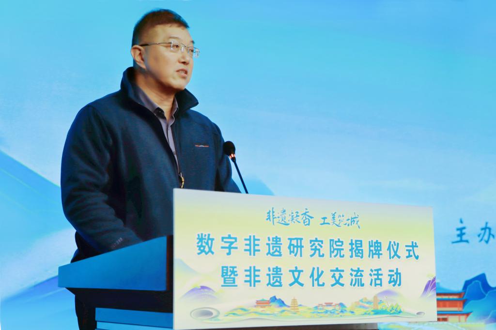 党委书记郭玉铸在致辞中表示,数字非遗研究院将严格遵循“以非遗为核,以科技为体,以素质为要,以育人为本”原则,通过搭建数字化保护平台、人才培养平台和产学研融合平台,开发出更多非遗文创产品,推动其走向市场。这一规划与学院在产教融合、艺科交叉领域的既有优势形成互补,为非遗传承注入高校力量。