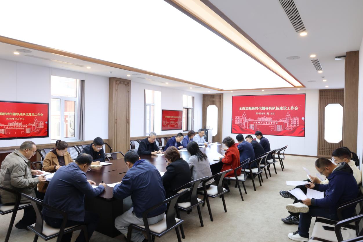 本网讯 11月14日,学院召开全面加强新时代辅导员队伍建设工作会议,旨在深入贯彻新时代党的教育方针,落实立德树人根本任务,研讨并部署学院辅导员队伍建设相关工作。党委书记郭玉铸出席会议并讲话,副院长宋辉及相关部门、各分院负责人参加会议。党政办公室主任刘广善主持会议。