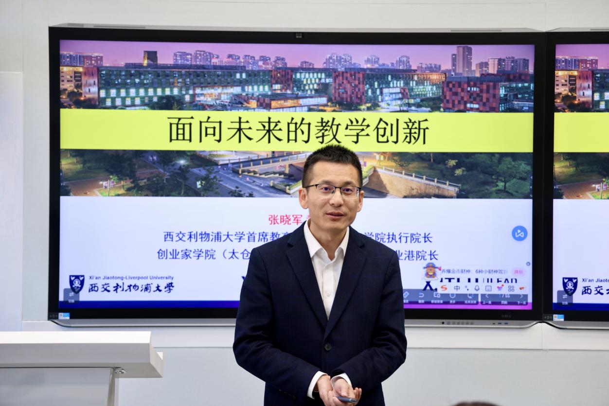 本网讯 如何让课堂拥抱未来?教学创新如何与高水平竞赛同频共振?11月21日,一场题为《面向未来的教学创新》的专题讲座与专项打磨工作坊在我院汇智楼智慧教室308举行,为教师们带来了前沿的理论与实践指南。活动由副院长石华主持,特邀西交利物浦大学未来教育学院执行院长、首席教育官张晓军教授担任主讲。