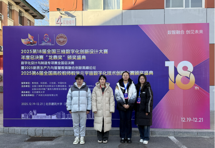 本网讯 12月21日,全国三维数字化创新设计大赛全国总决赛于北京建筑大学圆满落幕。我院计算机工程学院学生凭借扎实的专业功底与创新设计能力在赛事中表现亮眼,斩获全国总决赛二等奖4项,三等奖5项,实现获奖数质双优。