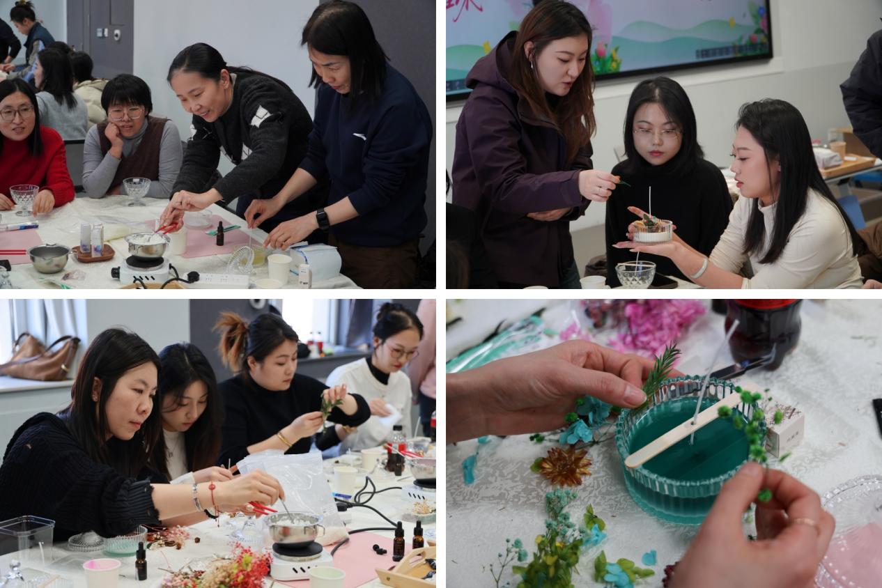 本网讯 3月6日下午,为迎接第116个“三八”国际劳动妇女节,丰富全院女教职工的精神文化生活,学院工会和妇联在汇智楼308教室开展以“向阳而生,绽放璀璨”为主题的香薰蜡烛与香片手工DIY主题活动。