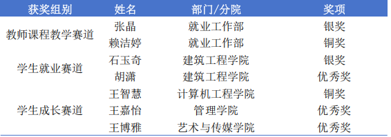 本网讯 3月13日,辽宁省第三届大学生职业规划大赛决赛在辽宁大学圆满落幕。我院师生在激烈的角逐中脱颖而出,教师课程教学赛道获得银奖1项、铜奖1项;学生赛道获得银奖1项、铜奖1项、优秀奖3项;学院获评“优秀组织奖”,刷新了我院在该项赛事的最好成绩,充分彰显了学院多元化人才培养的扎实成效和就业育人工作的显著成果。