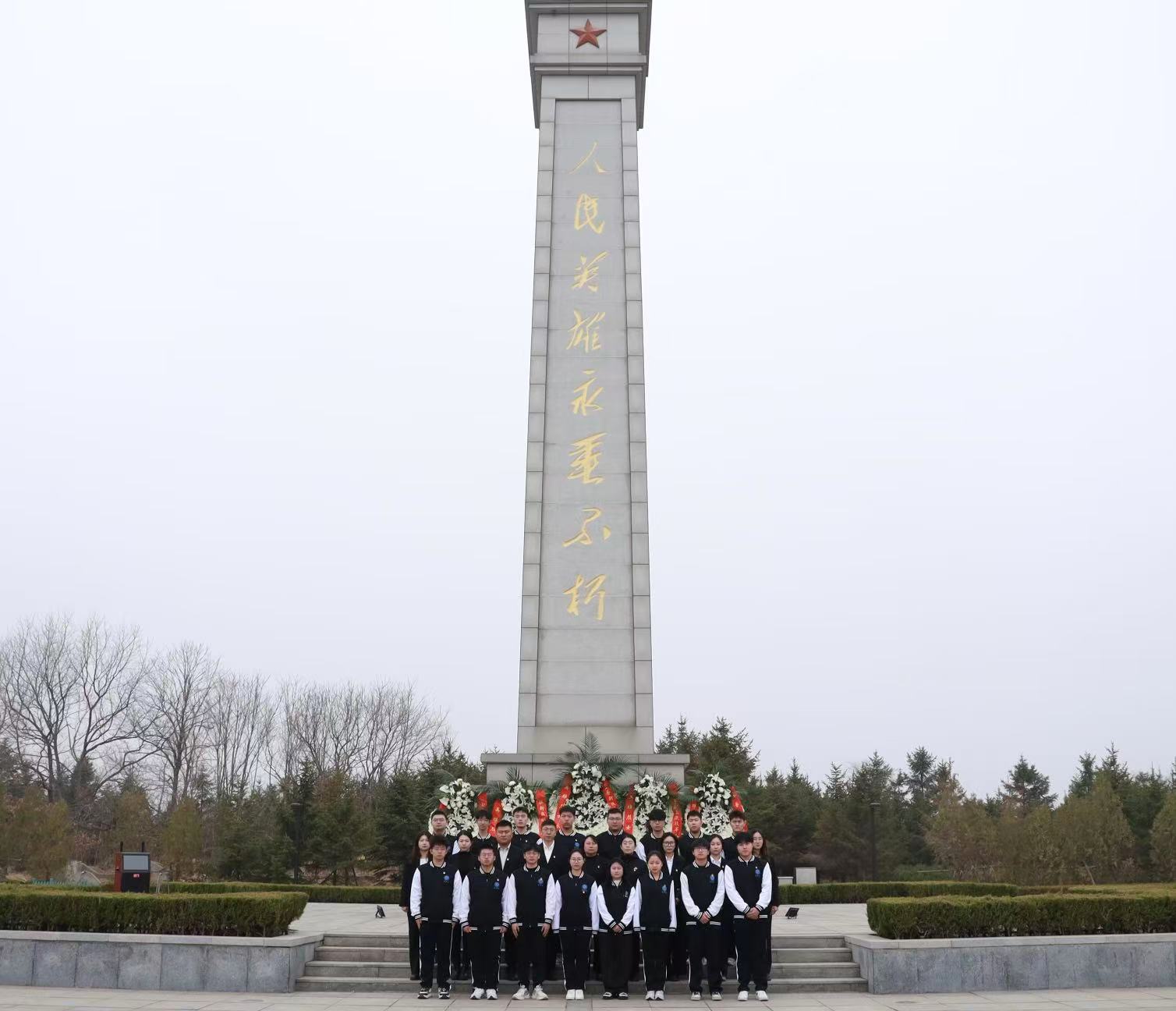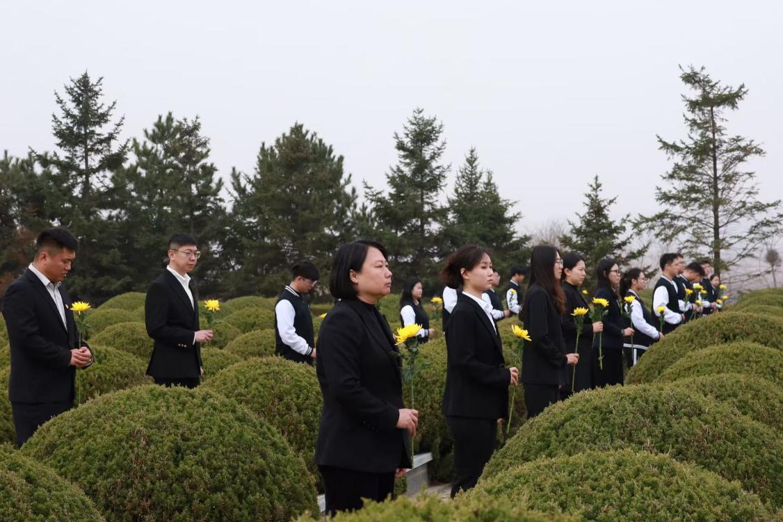 默哀毕,全体师生依次上前,将手中的鲜花轻轻敬献在纪念碑与烈士墓碑前,俯身鞠躬,以最质朴真挚的方式,向长眠于此的革命先烈表达最深切的追思与最崇高的敬意。